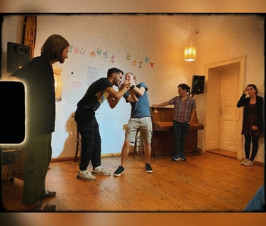 Every other Friday at Fincan, a community-run cafe in Neukölln, we host one or two improv teams, followed by an open jam.